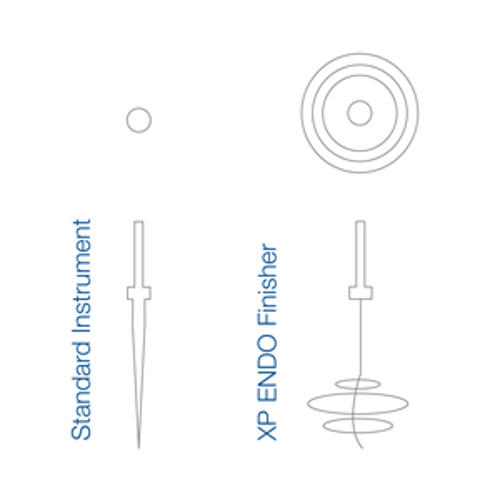 The XP-endo Finisher will revolutionise your endodontics by providing cleaner canals - whatever your file system. XP-endo Finisher is able to treat root canals with highly complex morphologies, from the narrowest to the largest, and from the straightest to the most severely curved canals. Because of its small core size, ISO 25 in diameter, and its zero taper, the file benefits from incredible flexibility and shows unparalleled resistance to cyclic fatigue. In addition the file will contact and clean the dentine but NOT change the original shape of the canal.
